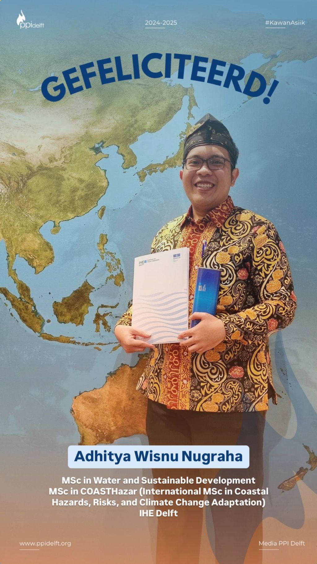 Congratulations on completing your MSc in Water and Sustainable Development and Coastal Hazards, Risks, Climate Change Impacts and Adaptation (CoastHazar) at IHE Delft Institute for Water Education.